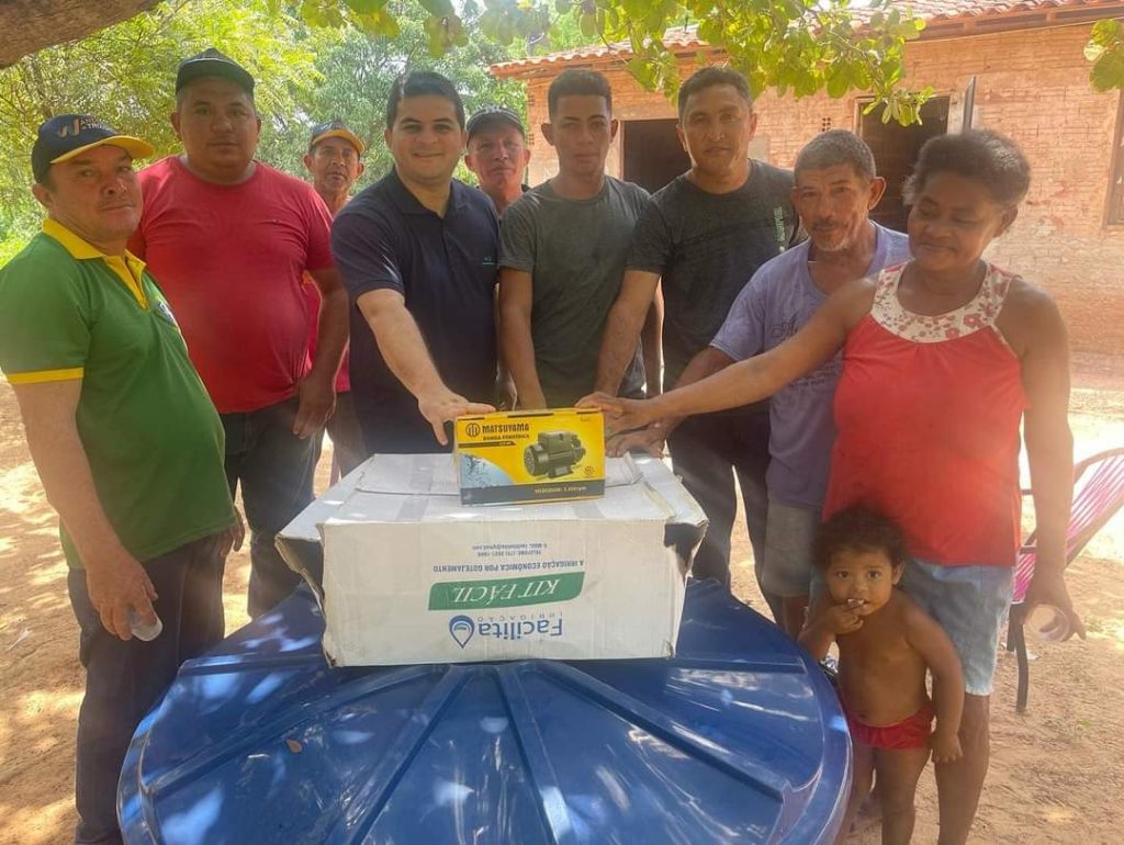 “Entregamos kits de Irrigação, caixa d’água e cinco pares de chuteiras e verificamos a conclusão do poço semi artesiano. Fico feliz pela acolhida que sempre recebo nessa importante região, agradeço o apoio e reafirmo o meu compromisso de continuar trabalhando pelo progresso do nosso povo!”, destacou o vereador em suas redes sociais.