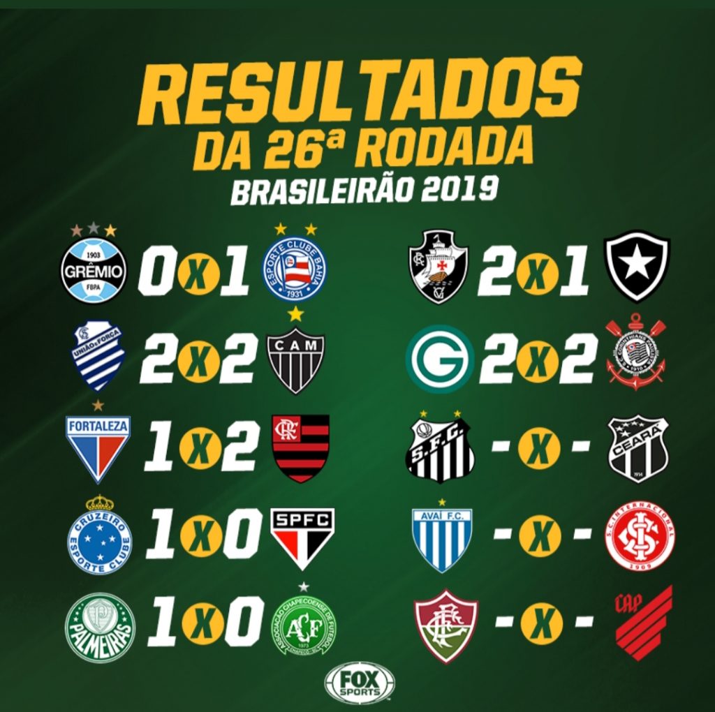 Confira todos o resultados da rodada 26 do Brasileirão. Depois desta rodada veja como ficou a tabela de classificação.