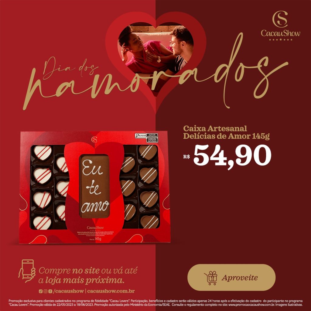 Você e o seu amor merecem vivenciar momentos deliciosos e únicos na data mais romântica do ano, e a Cacau Show pode deixar tudo ainda melhor!