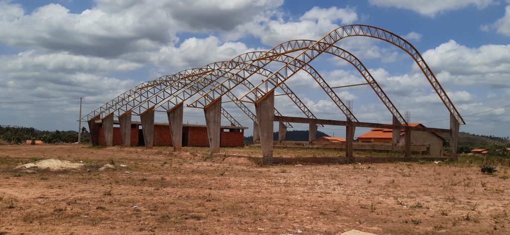 Você percebe que pouca coisa foi feita nele de 2017 até agora. Oficialmente o ginásio só tem  20% do que deveria ter sido construído e pelo que nós descobrimos nem empresa existe hoje, licitada, para concluir a obra.