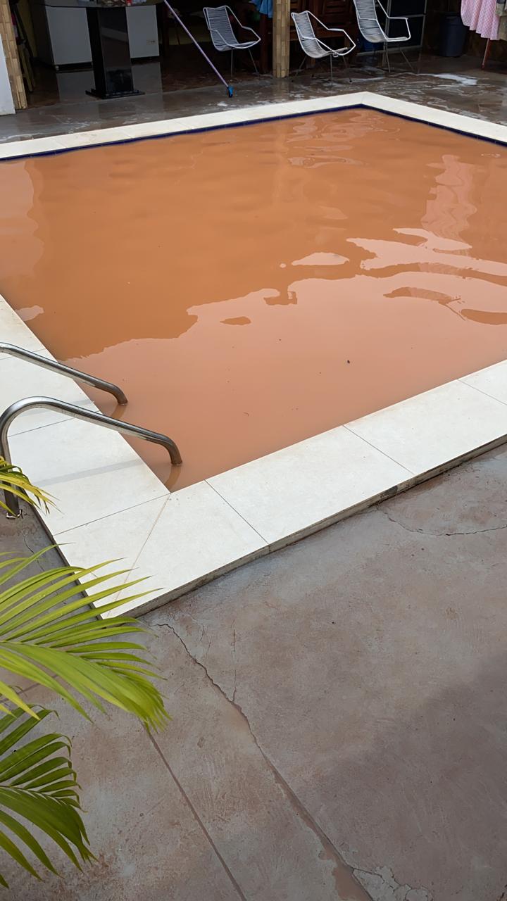 (…) Isso aqui é na casa do meu pai. Endereço Rua Dr. Rui Archer Novo Milênio. Entrou água na casa de todos os moradores. Olha a piscina. Estamos contato com você aqui para fazer uma reportagem com os moradores. Essa é uma rua que Ricardo Archer está construindo e fez uma mureta onde impede que a água escorra e está entrando na casa de todos os moradores (…)
