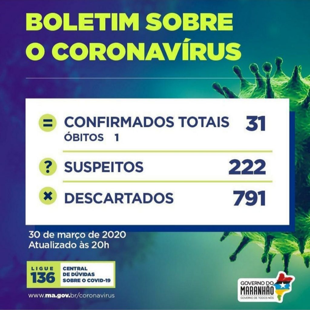 O Maranhão teve 791 casos suspeitos de novo Coronavírus descartados. Veja outros números desta segunda-feira, 30, divulgados oficialmente pela Secretaria Estadual de Saúde