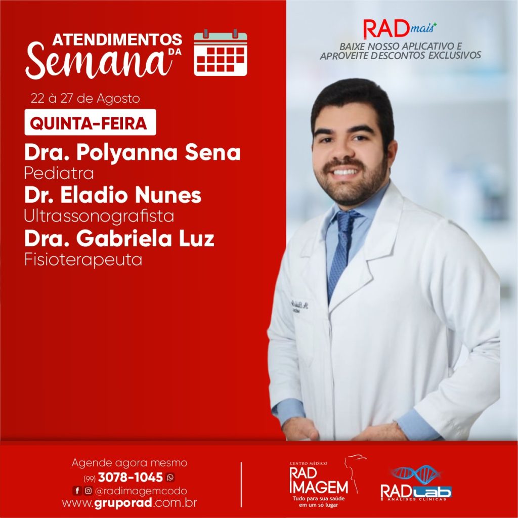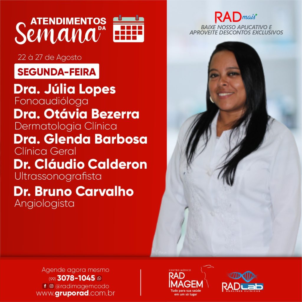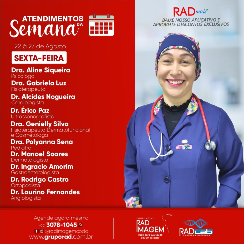 Veja a programação de especialistas do Centro Médico Rad Imagem para esta semana