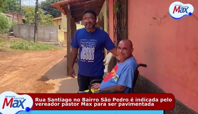 “Estamos aqui com nosso morador, querido amigo e nosso irmão Antônio Marcos, que é cadeirante, estamos aqui na Rua Santiago, é uma rua importante e precisa desse benefício, seja pavimentada, bloqueteada, construção de canteiro, rua que dá acesso à César Brandão e a Marechal Castelo Branco, é uma rua pequena mas que é importante pra população, e importante para os moradores aqui, e nós vamos pedir para que seja feito o mais rápido possível a melhoria aqui na Rua Santiago, enviaremos nosso pedido ao prefeito Zé Francisco, para o secretário Divaldo e é o que queremos, trazer benefícios para aqueles que mais precisam, contem com a gente!”, finalizou o vereador Pastor Max.